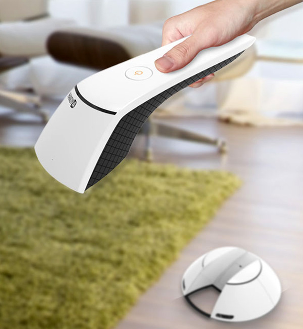 机器人吸尘器是非常好用的除尘设备,但它也存在一定的不足之处,例如遇到一些死角的灰尘就很难解决。而 HANDY VA 正常工作和一般的机器人吸尘器没什么区别,但在遇到难清洁的地方,只需轻推按钮就能将洗尘器部分拆卸下来,手持位置的弯曲形状确保抓握比较舒适。