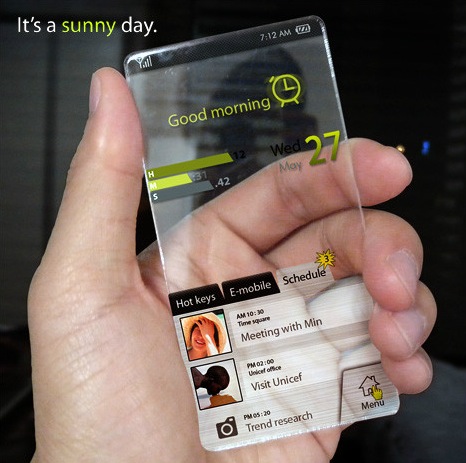 8、透明的天气手机天有不测风云,于是有了一系列有关部门中唯一一个想说实话,但往往又说不准的气象部门。 Seunghan Song设计了一款透明的概念天气手机,这款触屏手机可以实时显示当前的天气状况,并根据天气模拟出效果图。比如赶上下雨天,手机屏幕上可以看到很多雨点。 非常小清新的一款手机。