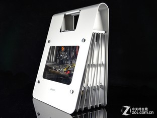 浑然天成的一体感,这可不是一般改造机箱能带来的视觉冲击 从实物上来看,我们不难发现与其说它想一本书,如今更像是一个造型冷峻华美的包。整体MOD机箱材质为铝合金,最外层为3mm厚的铝合金材质,内部支撑结构厚度为1.5mm,一般来说传统金属机箱都会有非常硬朗的感觉,但铝合金的本色加之表面的磨砂工艺处理,让刚硬的外表下更具高贵感。