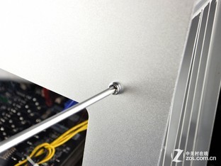 将主机正反面的扁形螺丝扣卸下 作为DIY主机,如果要考虑到可能会升级硬件的长远问题,主机的拆卸如果能做到简单那是最好了。名龙堂M-PACKAGE由于机箱外形采用了不对称一体设计,所以并不是常见的两侧面板分别独立拆下的常规拆卸步骤。但还是采用了扁平式的手拧螺丝,现将其扭下来。