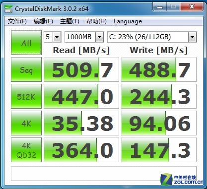 ATTO Disk Benchmark测试成绩 硬盘性能测试:Crystal DiskMark CrystalDiskMark是一个测试电脑硬盘检测工具,简单易于操作的界面让你随时可以测试你的存储设备,测试存储设备大小和测试数字都可以选择,还可测试可读和可写的速度。软件能够检测硬盘的随机读取/写入速度,连续读取/写入速度;测试随机512KB,2KB,4KB读取/写入速度(队列深度= 32)等,以此来辨别磁盘的性能及质量的优劣程度。