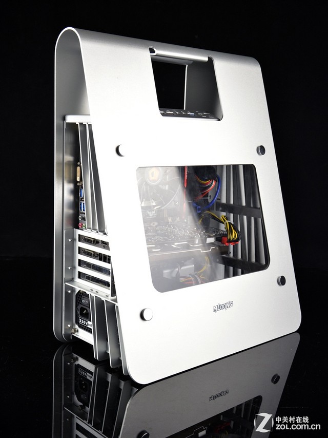 MLOONG(名龙堂)MOD主机马上惊艳你! M-PACKAGE机箱设计定稿之后,很快就制造成型,此前我们已经在相关新闻中曝光了主机的首批实物图,可能是由于并没有进行打磨工艺处理,也或者是图片的清晰度还不够,从视觉感官上并没有太惊艳的第一印象。不过,名龙堂已经将第一款最终量产的M-PACKAGE带到了中关村在线评测中心,主机外观的精细度确实震惊了我们很多小伙伴。 产品:i7 4790/GTX770/8G/固盘 台式组装DIY电脑 名龙堂 DIY组装电脑2 M-PACKAGE主机外观:工艺出众/实用度高